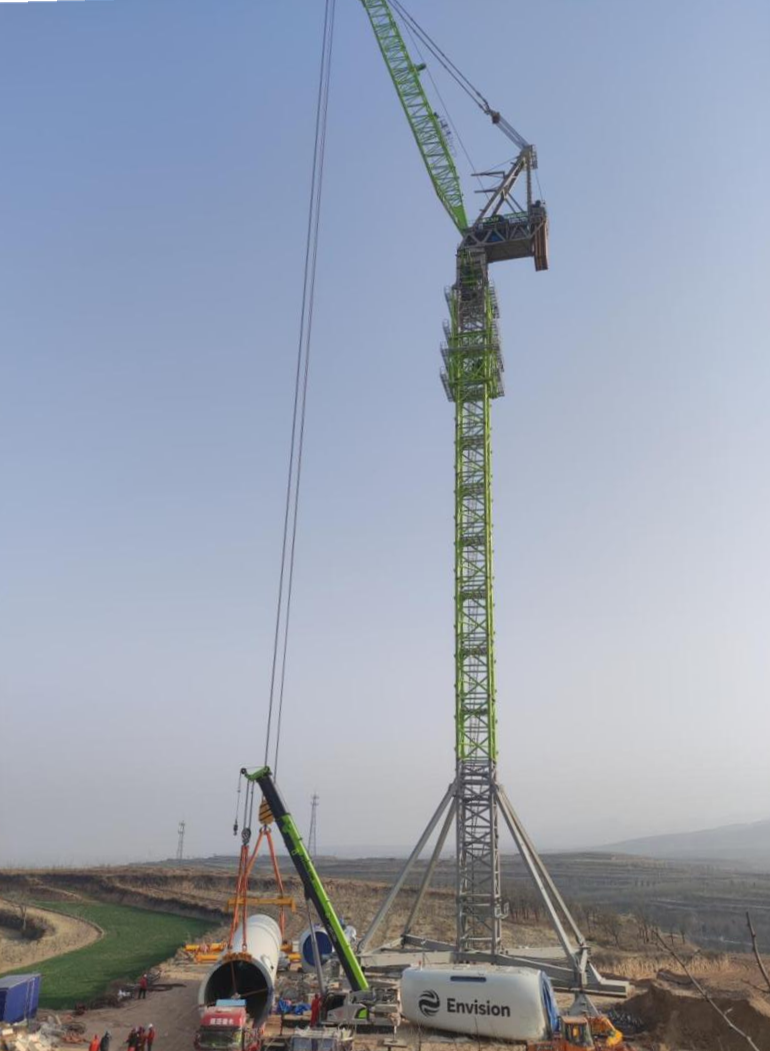 △中联重科风电动臂塔机LW2340-180正在吊装