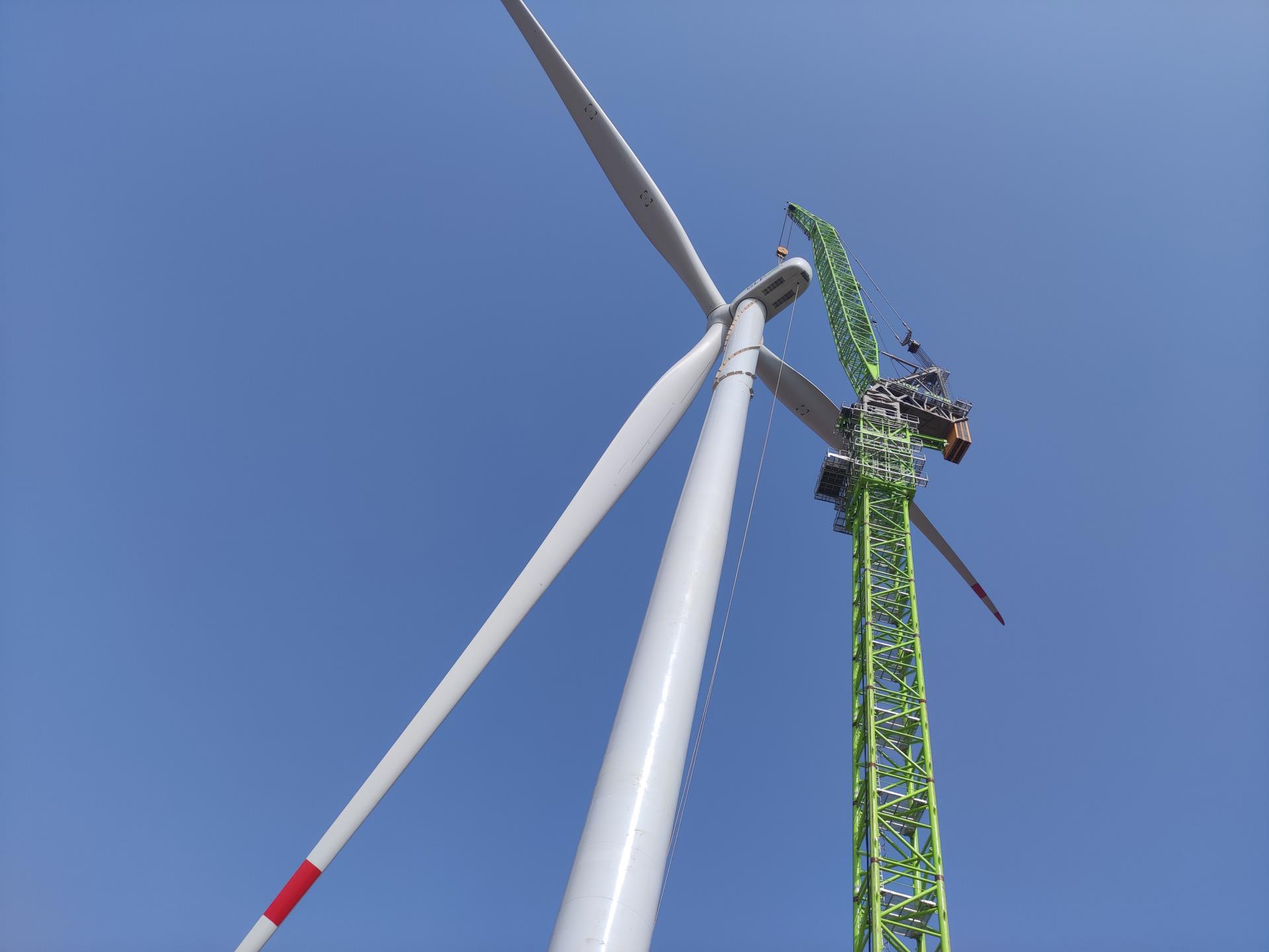 据了解,近年来,山西运城夏县利用当地丰富的风力资源,以绿色风电产业助力乡村振兴,夏县南大里乡,埝掌镇40MW分散式风电项目所在场区地形较为复杂,主要为东西走向的陡峭山地,项目方考虑到施工环境的限制和成本上的显著优势,选用中联重科风电动臂塔机LW2340-180,负责S1-S4塔筒和机舱总成,轮毂 红桃视频高清,叶片等的吊装, 。