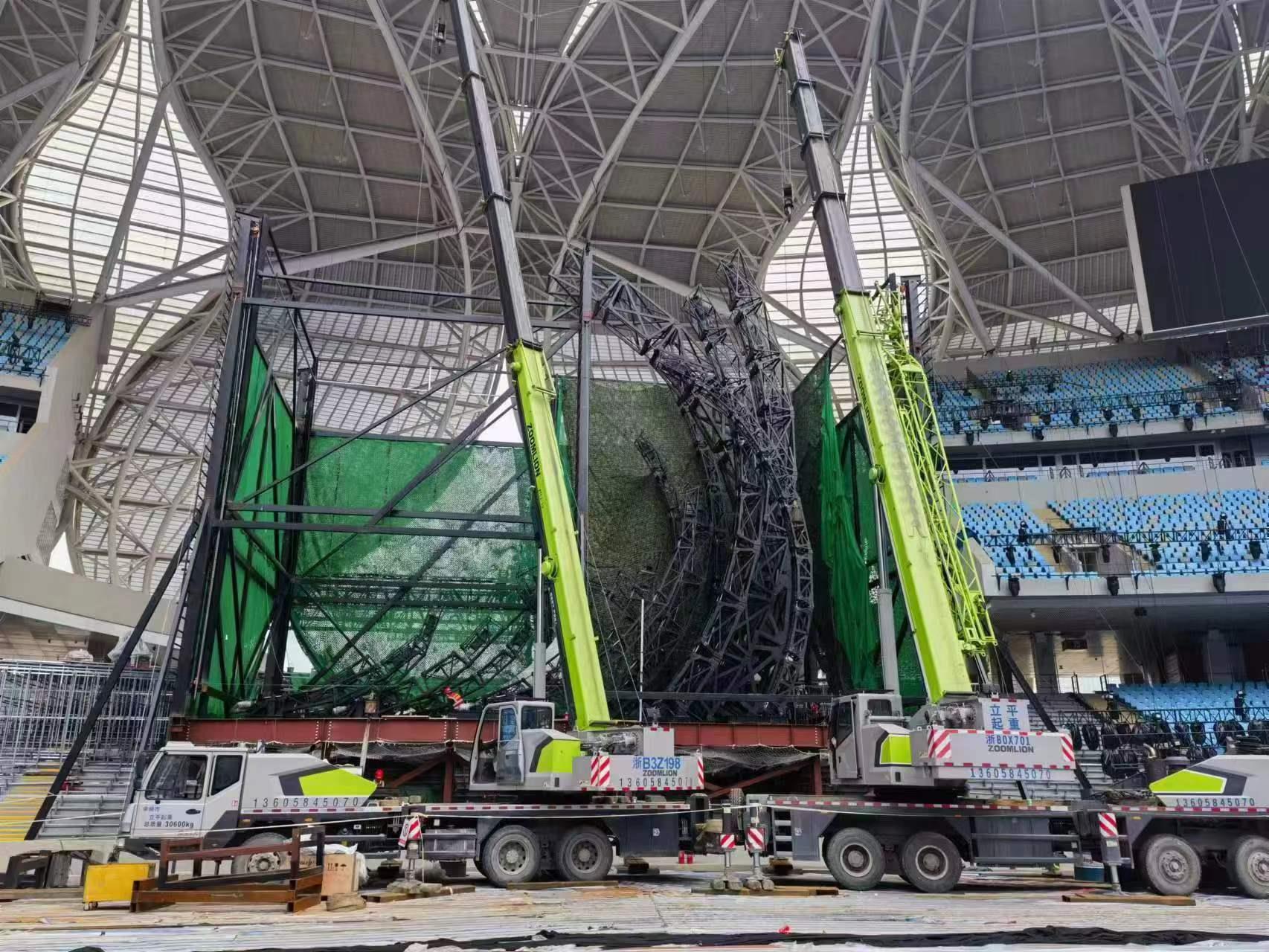 △中联重科起重机助力亚运会主火炬塔安装