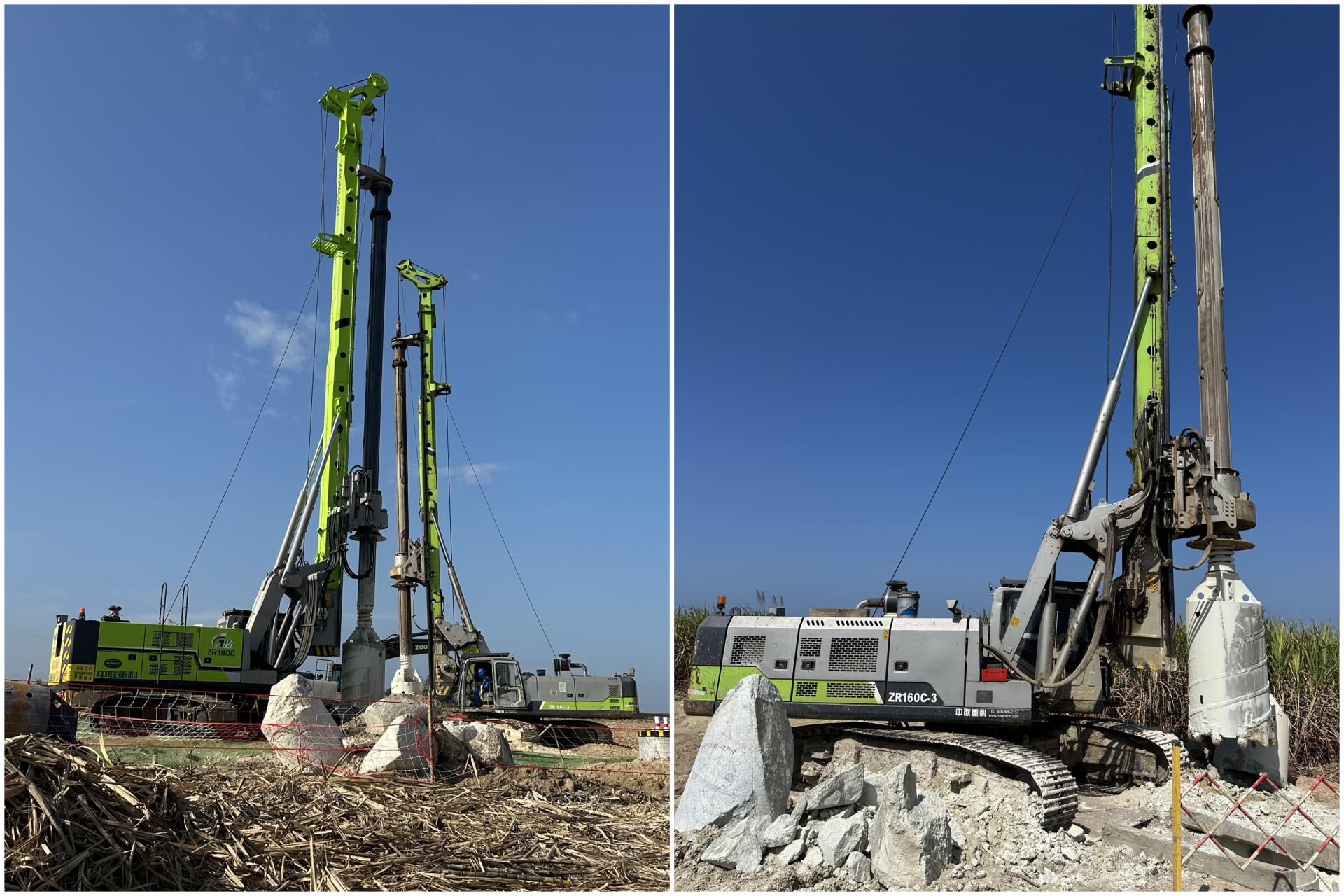 据项目负责人介绍,海南当地地层复杂多变,岩层高低不等,普通旋挖钻机设备施工困难重重,遇到砂土层极易出现塌孔,遇到中风化花岗岩层,截齿消耗较大,还容易出现取岩芯困难的问题,中联重科ZR180G旋挖钻机具备高稳定,高效率,高精准的施工特点,可实现一次性成孔,高度契合该项目需求 红桃视频免费观看,对比同类产品施工表现更出色, 。