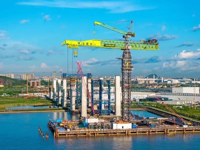 ▲中联重科全球**大塔机伫立狮子洋大桥建设现场(图片来源于公众号“广东交通”)