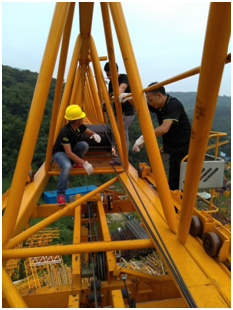 ▲小分队成员在发现钢丝绳跳槽问题后立马进行了处理