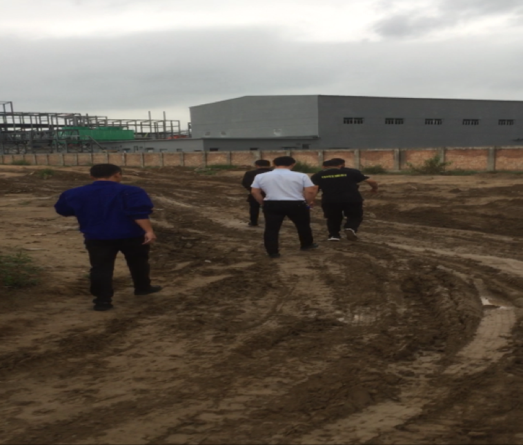 ▲徒步前往工地
